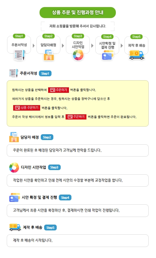 결제전 디자인시안을 먼저 확인 또는 구매 옵션이 복잡한 경우에는 유사 상품 검색한 뒤 무통장입금 결제방식을 선택후